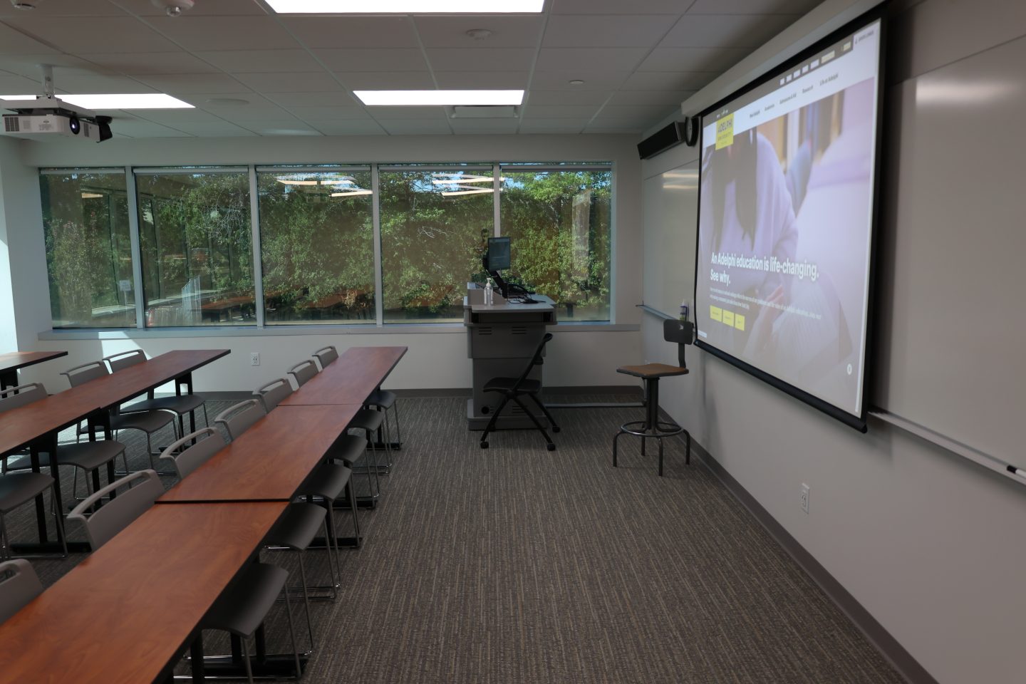 A top-to-bottom renovation of Adelphi’s academic space at 150 Motor Parkway in Hauppauge, NY incorporates brand new classrooms and meeting spaces.