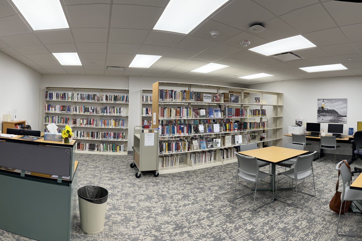 The newly renovated location includes a library and quiet study area.