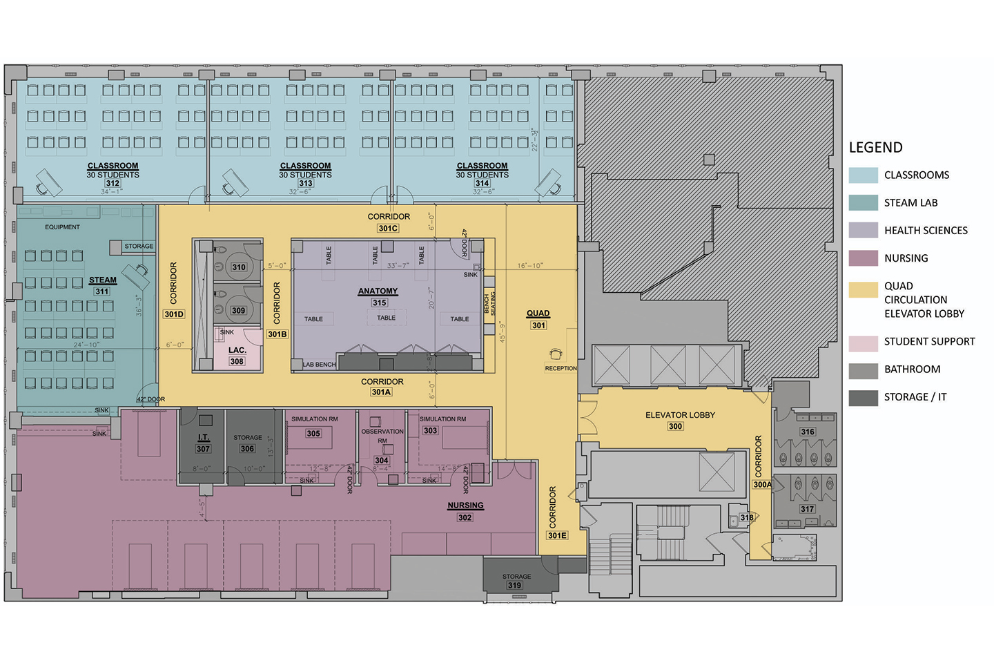The STEAM lab will feature a large glass viewing panel and a gallery space
