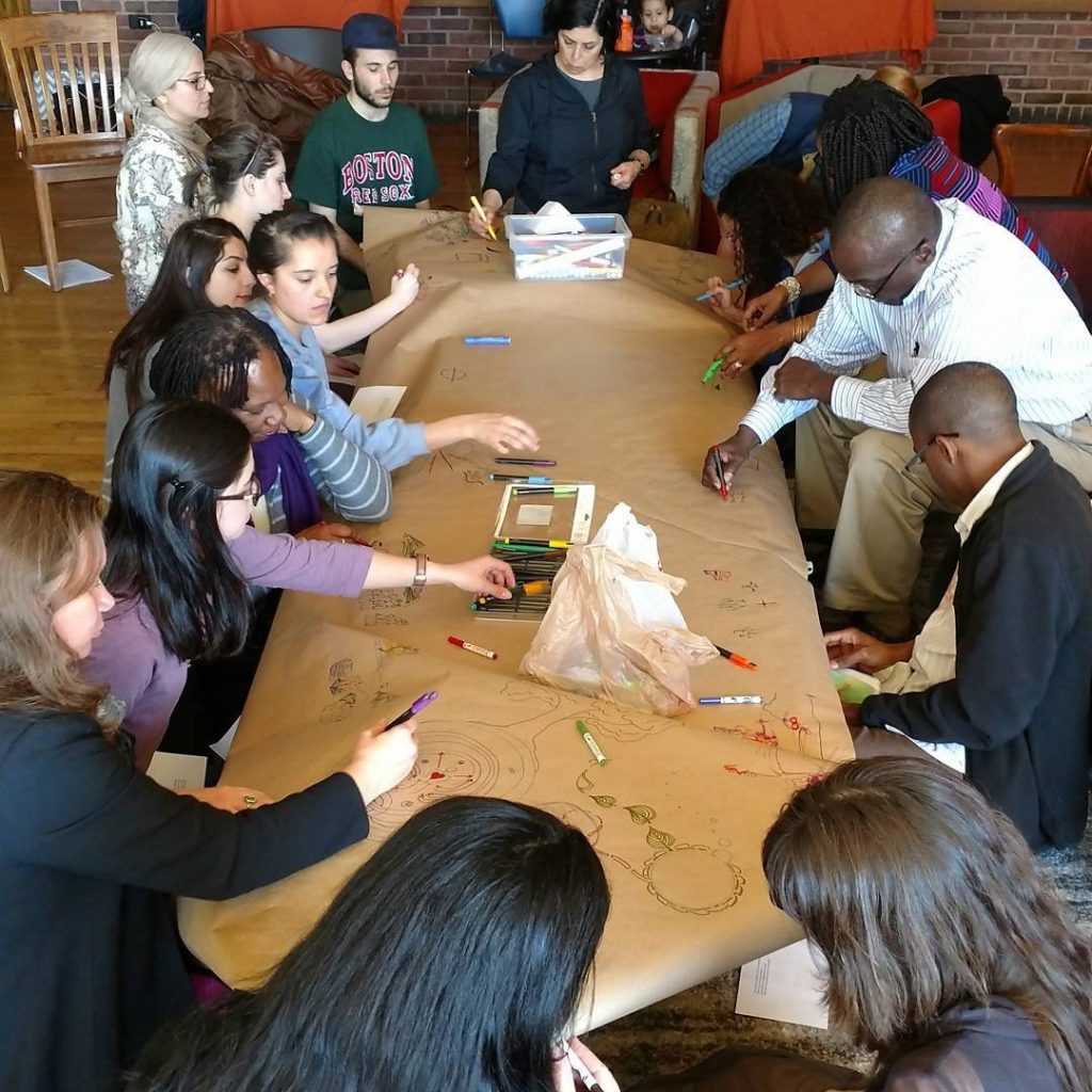 Dr. Bush works with youth at the Clark University Words Remake Life global convergence on methods to decolonize communicative praxis and university spaces, April 2017.