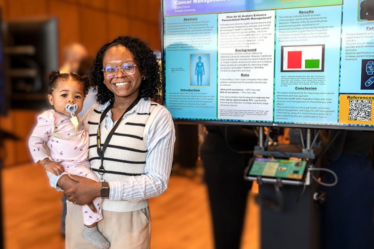 Our spring celebration of scholarship and creativity brings us together to learn and share as a community. Graduate and undergraduate research students share digital posters, give presentations and performances, and answer questions about their work. You might hear chemistry students discussing gene therapy, social work students sharing solutions for veteran housing, dance students performing a classmate’s choreography or young entrepreneurs sharing their million-dollar business ideas.