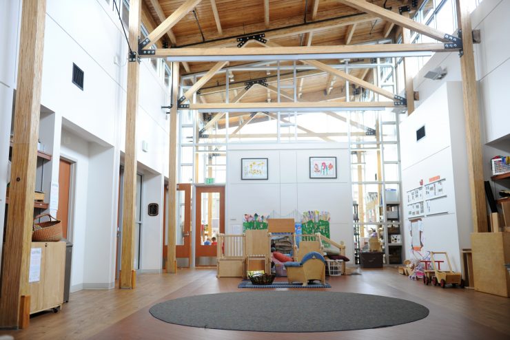 The 8,400-square-foot Alice Brown Early Learning Center provides a calm, relaxing and inviting atmosphere for children with the use of color, natural materials and fibers, and child-sized furnishings. Launch Gallery