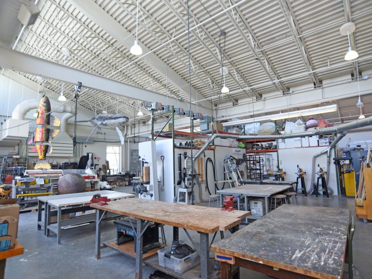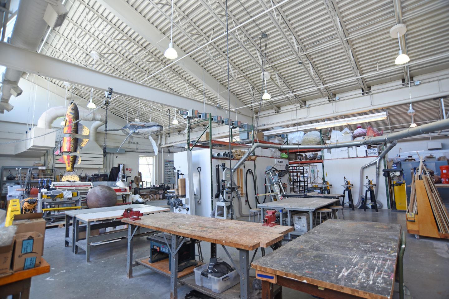 The clay area which recycles and pugs its own clay includes wheels, electric kilns, gas kilns, an anagama kiln, a slab roller, and an extruder for ceramics. We also have installation space for the less object-oriented disciplines of installation and performance art.