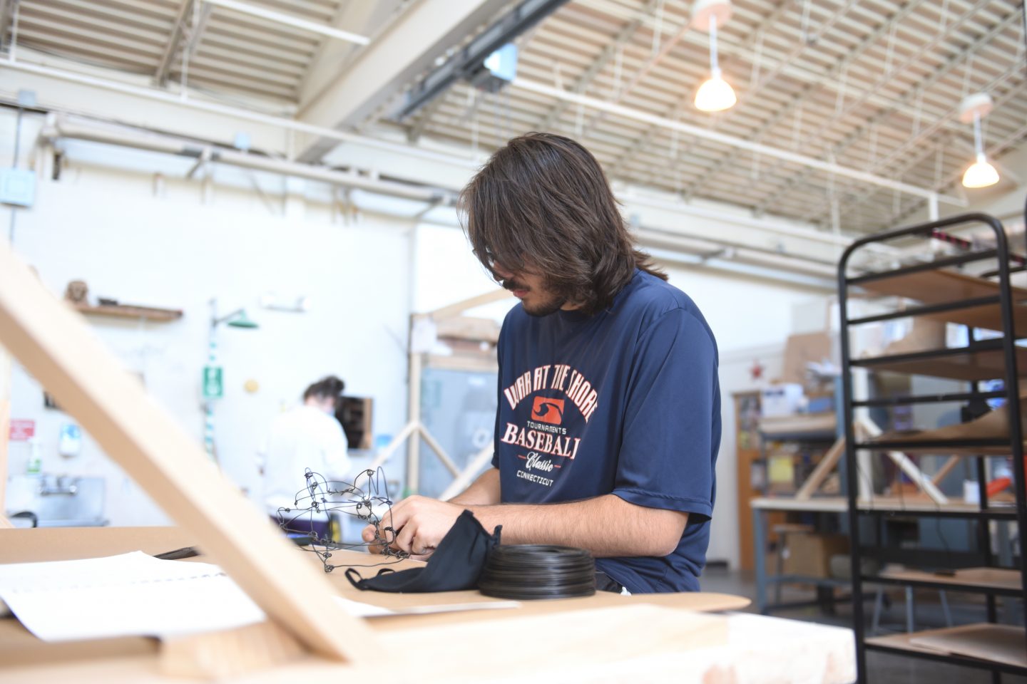 A student working on a 3D sculpture in the Klapper Center for Fine Arts.